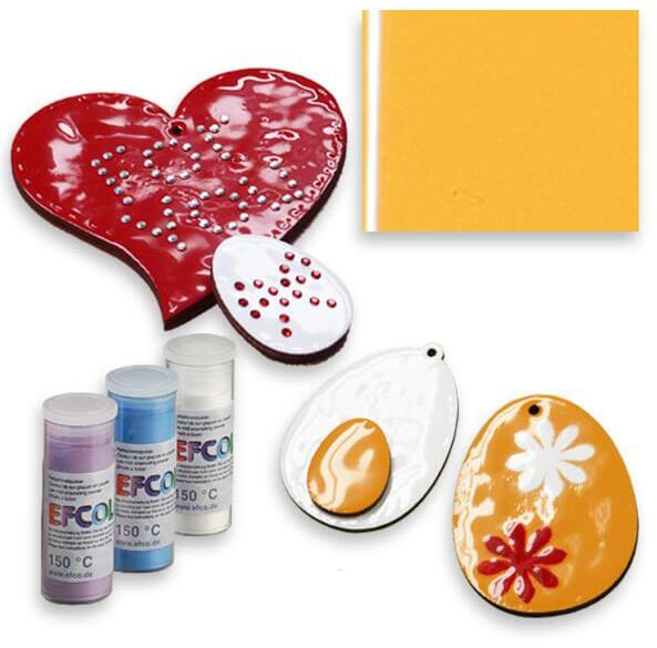 Az  Efcolor hobbizománc festékcsalád  lehetővé teszi, hogy otthon is készíthessünk  tűzzománchoz hasonló  medálokat, láncokat. A festékport szórjuk a zsírtalanított (ecetes, sós vízben lemosott, magától megszáradt) réz alapokra, és 150-180 fokos háztartási sütőbe téve olvasszuk rá. 10 ml-es kiszerelésben