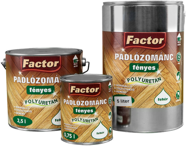 Factor Padlózománc fényes Fényes padlózománc. Kül- és beltéri használatra. Fára, falra, betonra, stb. .