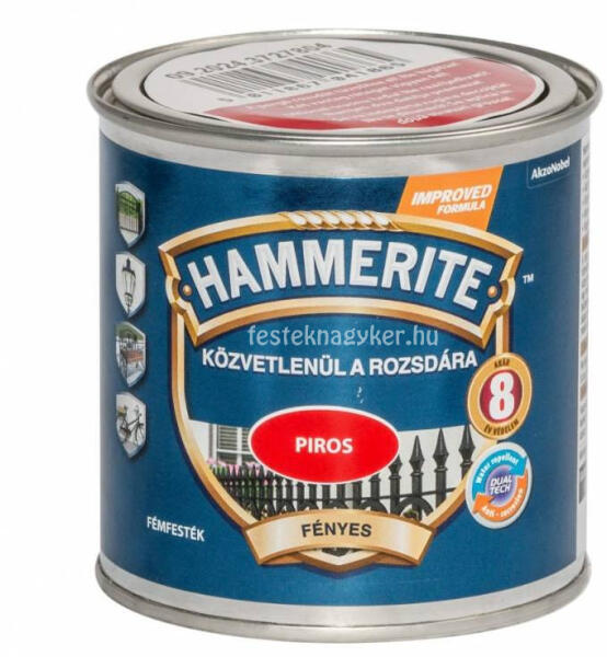 Speciális összetételű fémfesték közvetlenül a rozsdás felületre, mely fényes kivitelben is elérhető. A Hammerite speciális összetételének köszönhetően megakadályozza a már meglévő, jól tapadó rozsda elterjedését, és korróziógátló pigmentjei különlegesen tartós védelmet biztosítanak a festett felületnek. A Dualtech techológia révén kettős védelmet nyújt a rozsda ellen: vízlepergető és korróziógátló hatás, így a fém tovább marad ép!