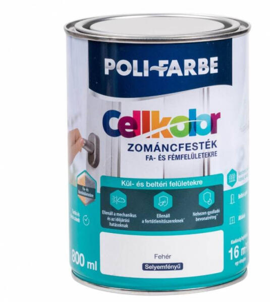 POLI-FARBE Cellkolor Selyemfényű zománcfesték fehér 0, 8l (PO2030104006)